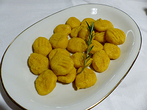 Kaffee Crème brûlée mit Orangensauce Wildschwein-Frühlingsrollen mit Rote-Bete-Suppe Kürbis-Gnocchi Reh-Bolognese mit Kürbis-Gnocchi Wildschweingulasch mit Kaffee und Schokolade