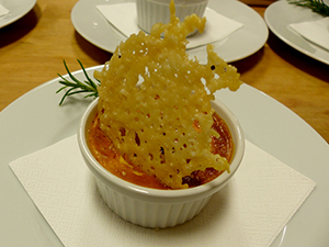 Gewürz-Parfait mit Birne und Zimtcrème Geröstete rote Bete mit Ricotta Kürbis-Orangen-Suppe mit Zimtcroutons Hirschrücken mit Tartes Tatin von roten Zwiebeln