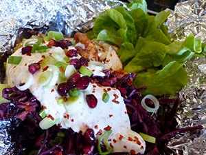 Backofen auf 240 Grad vorheizen Kartoffeln gründlich waschen und mit einem Spieß rundum mehrmals einstechen Öl mit Ras el Hanout, 1 TL Chili und 1…
