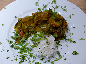 - 170 ml Wasser dazugeben, umrühren und bei geschlossenem Deckel etwa 40 Minuten schmoren