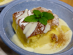 - Teig über die Äpfel geben und im Ofen auf der mittleren Schiene etwa 15 bis 20 Minuten goldgelb backen