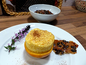 - Das Parfait in die Orangenhälften füllen und mindestens 5 Stunden in das Gefrierfach stellen