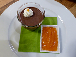 - Auf das Kompott stürzen und mit Schokospänen garnieren