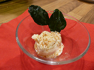 Kokosraspeln in einer trockenen Pfanne bei leichter Hitze goldbraun rösten und abkühlen lassen Kokosnusscrème und Kokosmilch in einen Topf gießen und unter Rühren bei mittlerer…