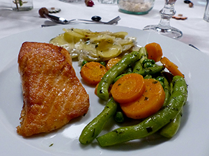 mit Kartoffel-Zitronengras-Gratin und Mischgemüse aus dem Garten Möhren schälen und in Scheiben schneiden Bohnen waschen und die Enden abschneiden Butter erhitzen, aber nicht bräunen Bohnen…