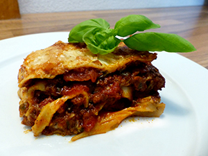 Zwiebel und Knoblauch abziehen, klein würfeln und in 4 EL Öl glasig dünsten Hackfleisch dazugeben und krümelig braten Mit Thymian, Zimt, Pfeffer und Salz würzen…