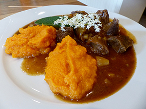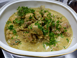 Schalotten abziehen und halbieren Petersilienwurzeln und Sellerie schälen und klein würfeln Fleisch in 4 etwa gleich große Stücke schneiden Schalotten in einem großen Bräter im…
