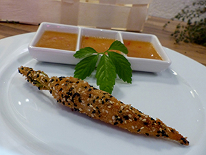 und Preiselbeer-Meerrettich-Sahne Karotte in feine Streifen schneiden Das weiße vom Lauch in Streifen schneiden Fenchel in Streifen schneiden Fenchelkraut grob hacken Lachsfilet in hauchdünne Scheiben…